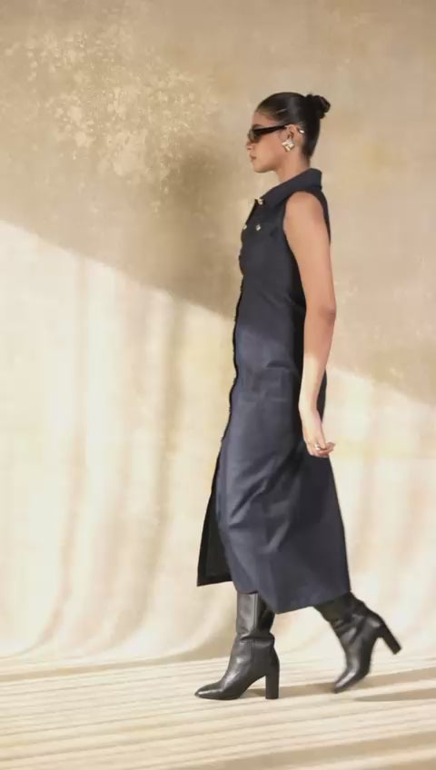 A tailored sleeveless jumpsuit crafted with precision and fluid structure. Defined shoulders, a cinched waist and elongated legs create a silhouette of quiet strength and ease. Versatile, modern and timeless, designed for days that move with intention.