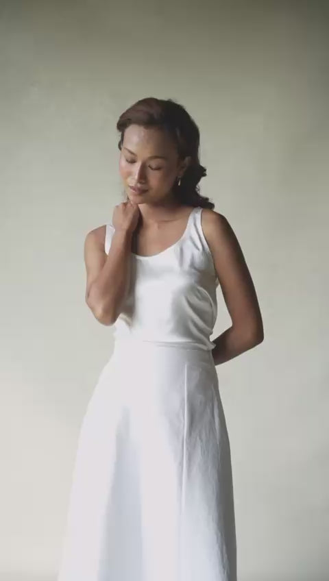 A fluid satin tank designed for refined everyday wear. Soft sheen, effortless drape and a clean, minimalist silhouette, a timeless wardrobe foundation that elevates any look with quiet elegance.