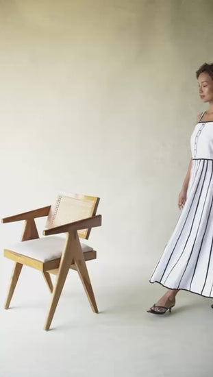 A refined day-to-evening silhouette with contrast piping and subtle structure. Clean lines, soft movement, and a quietly striking finish, designed for effortless elegance.